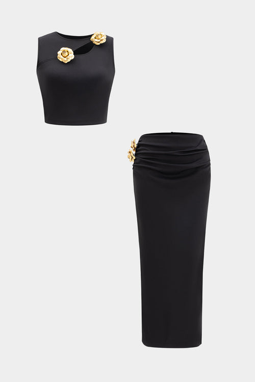 3D Çiçekli Bluz Ve Etek Takımı